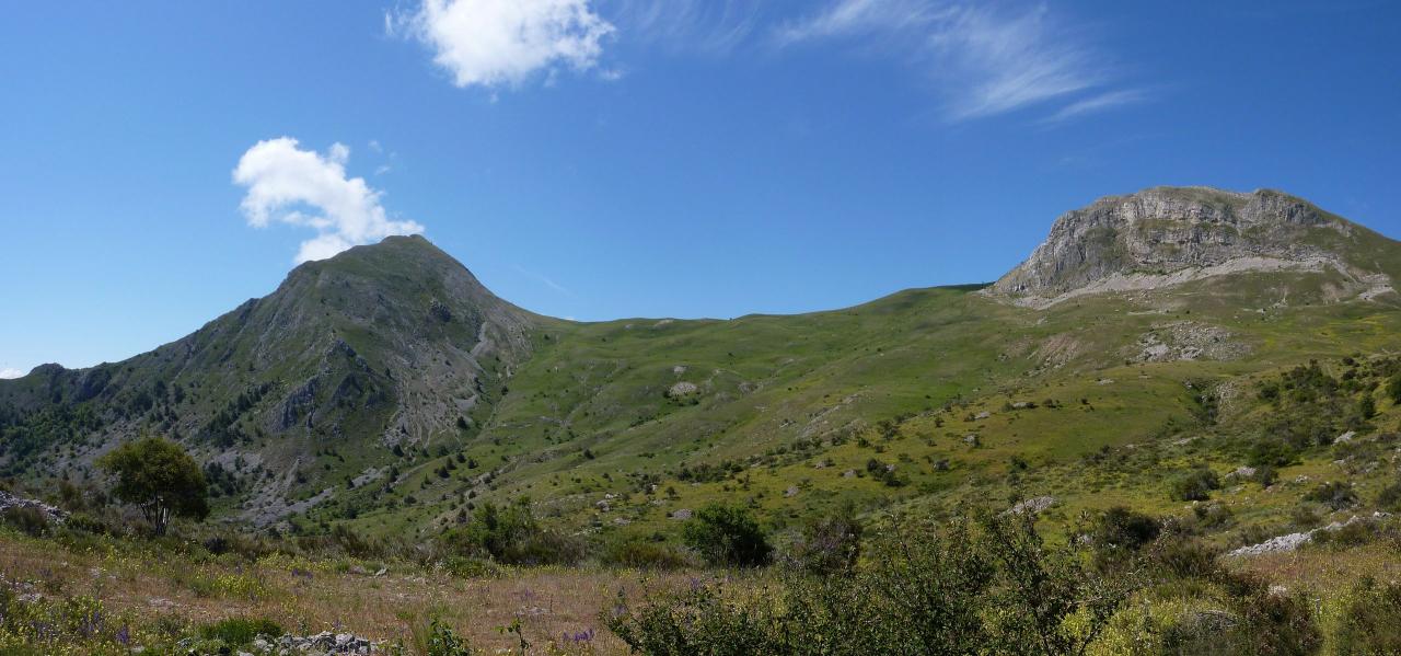 Vu du Collet du vieil Esclangon on aperçoit La Grande Cloche de Barles (1887m),terme de notre randonnée de jeudi